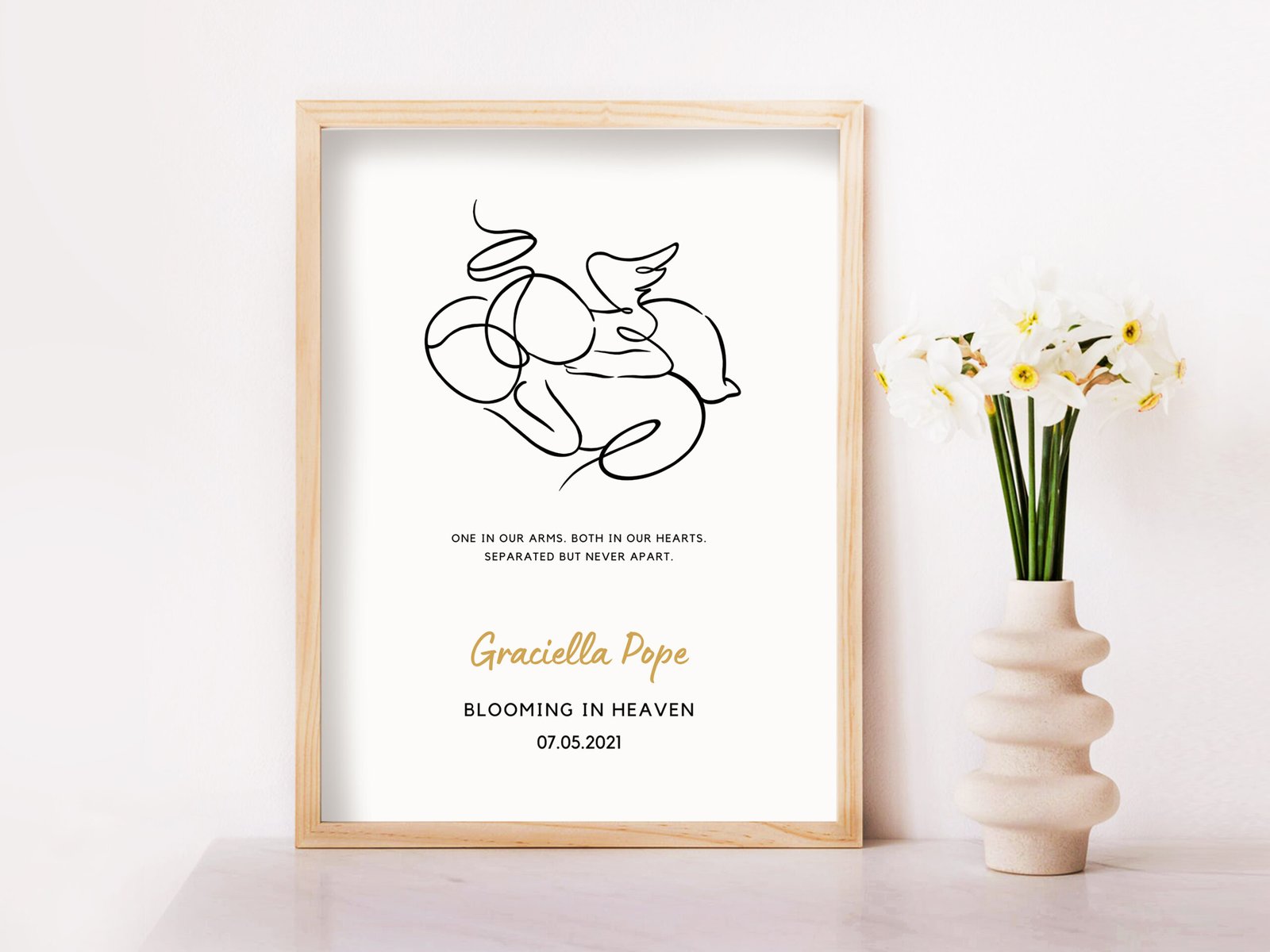 An editable memorial digital download of  Twin Angel Baby in minimalist line art. You can use this custom made for family who have experienced miscarriage/child loss/stillborn. You may also include baby’s name for your beautiful gift.